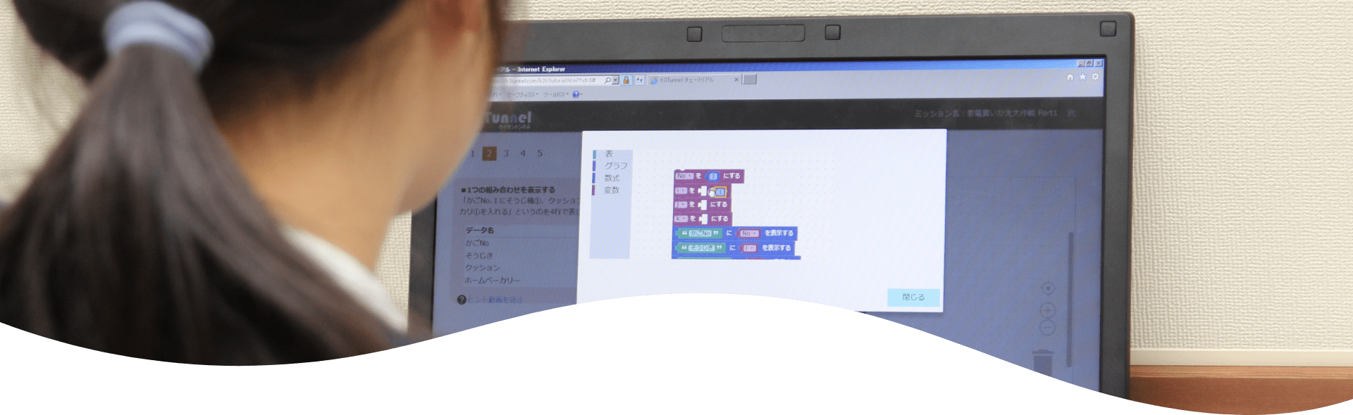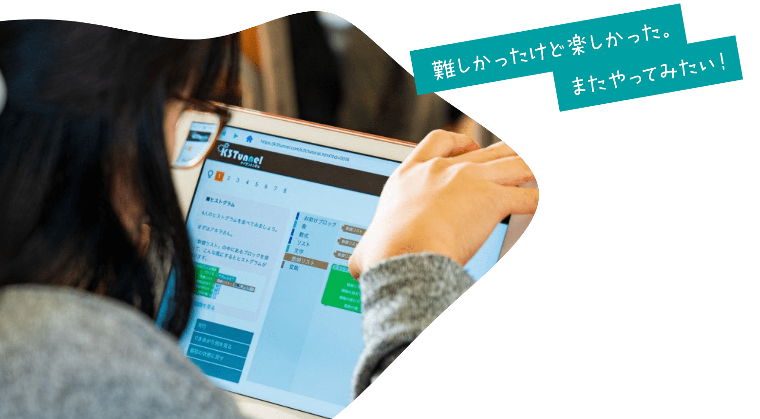 K3Tunnelは、道具としてのプログラミング、特に数理的な分野への適用を重視したプログラミング学習ツールです。「プログラミングで学ぶ」をコンセプトに、小学生から大人まで楽しく学べるオリジナルコンテンツを提供しています。
