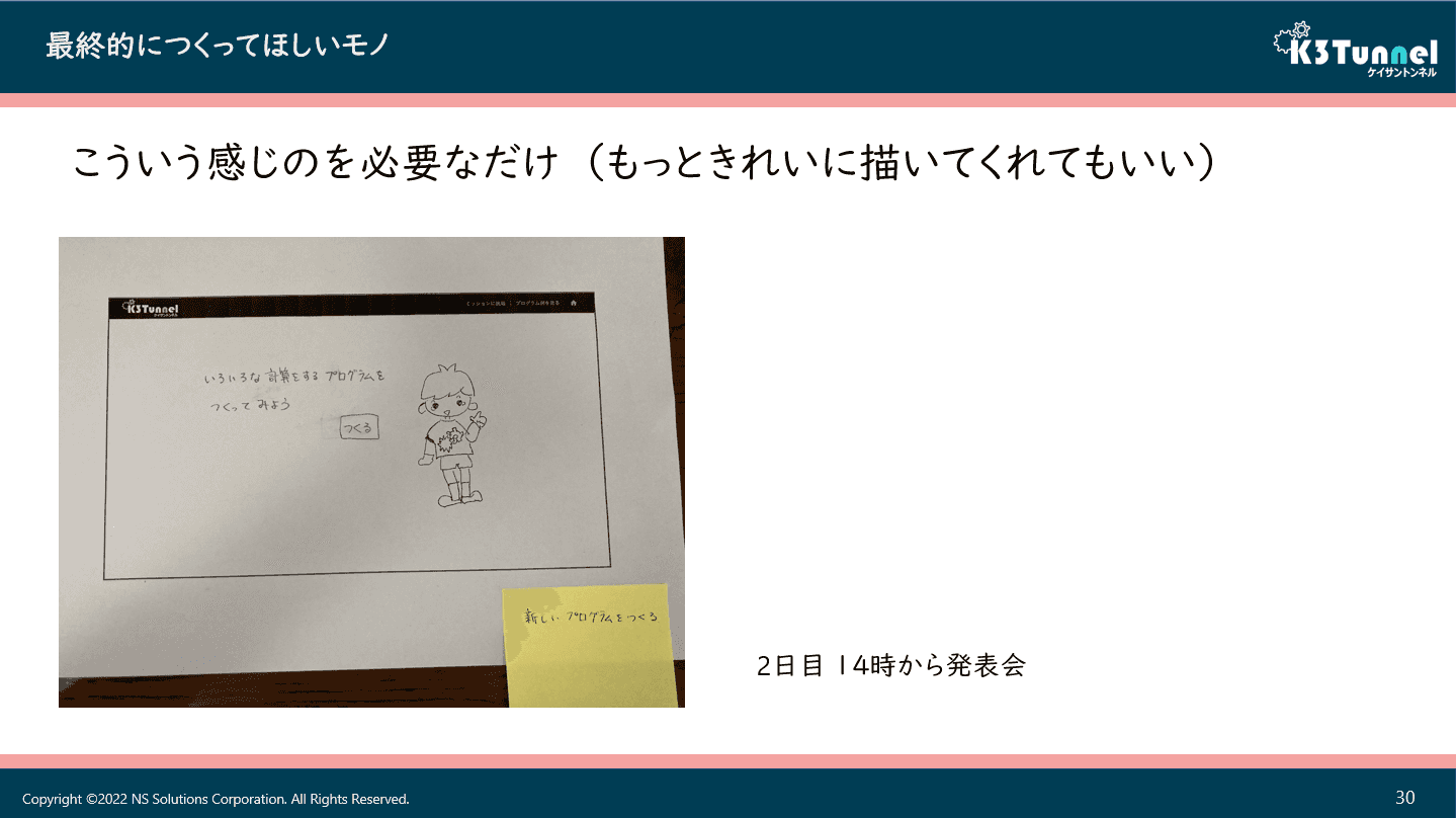 - 意外と紙を使用したりホワイトボードを使ったりとアナログな場面もあったことが予想外だった