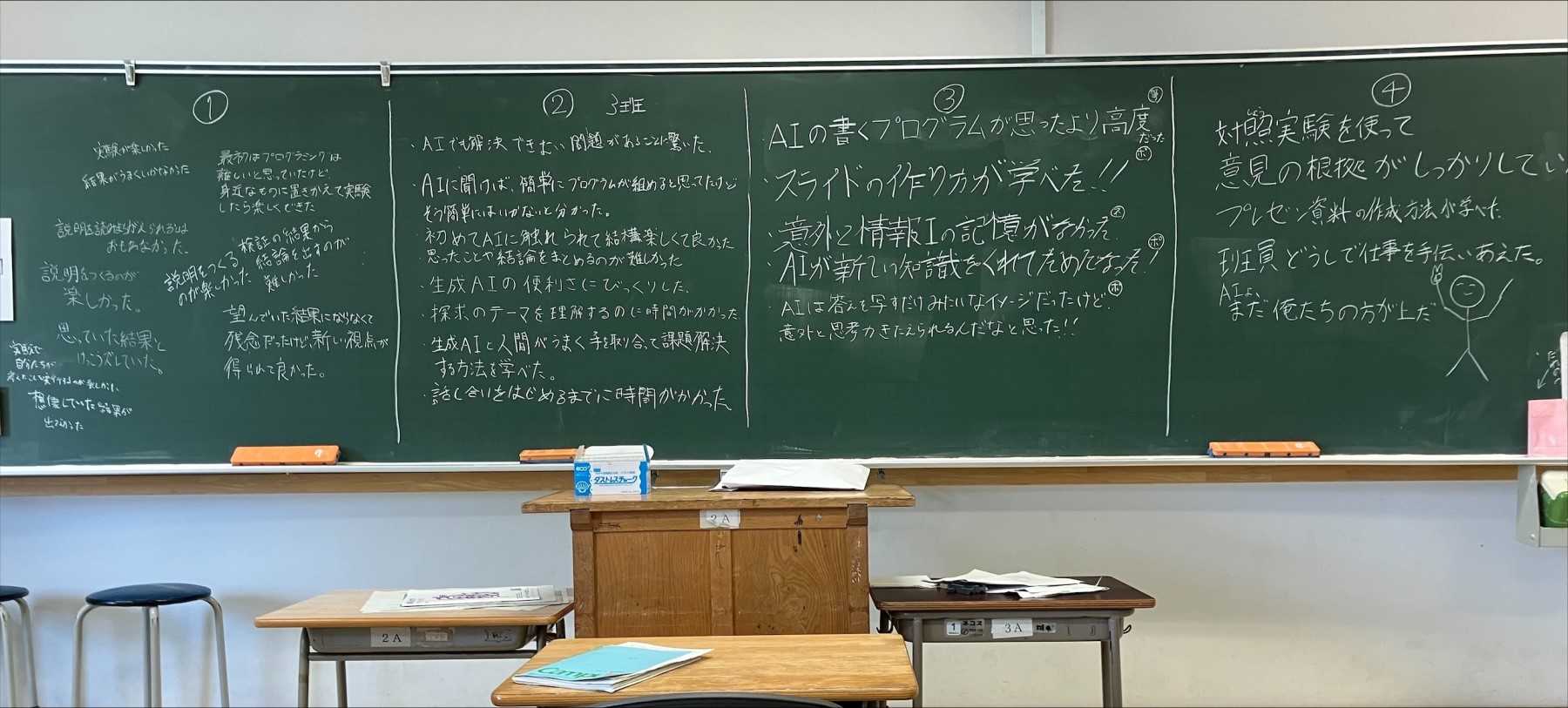 大した差ではないものの「生成AIを使わない説明のほうが作業する人はやりやすかった」という結果だったようです。「生成AIを使ったほうがよい」という結論を期待していたのにそうはならずやや残念そうではありましたが、楽しみながら探究していた様子が伝わってきました。