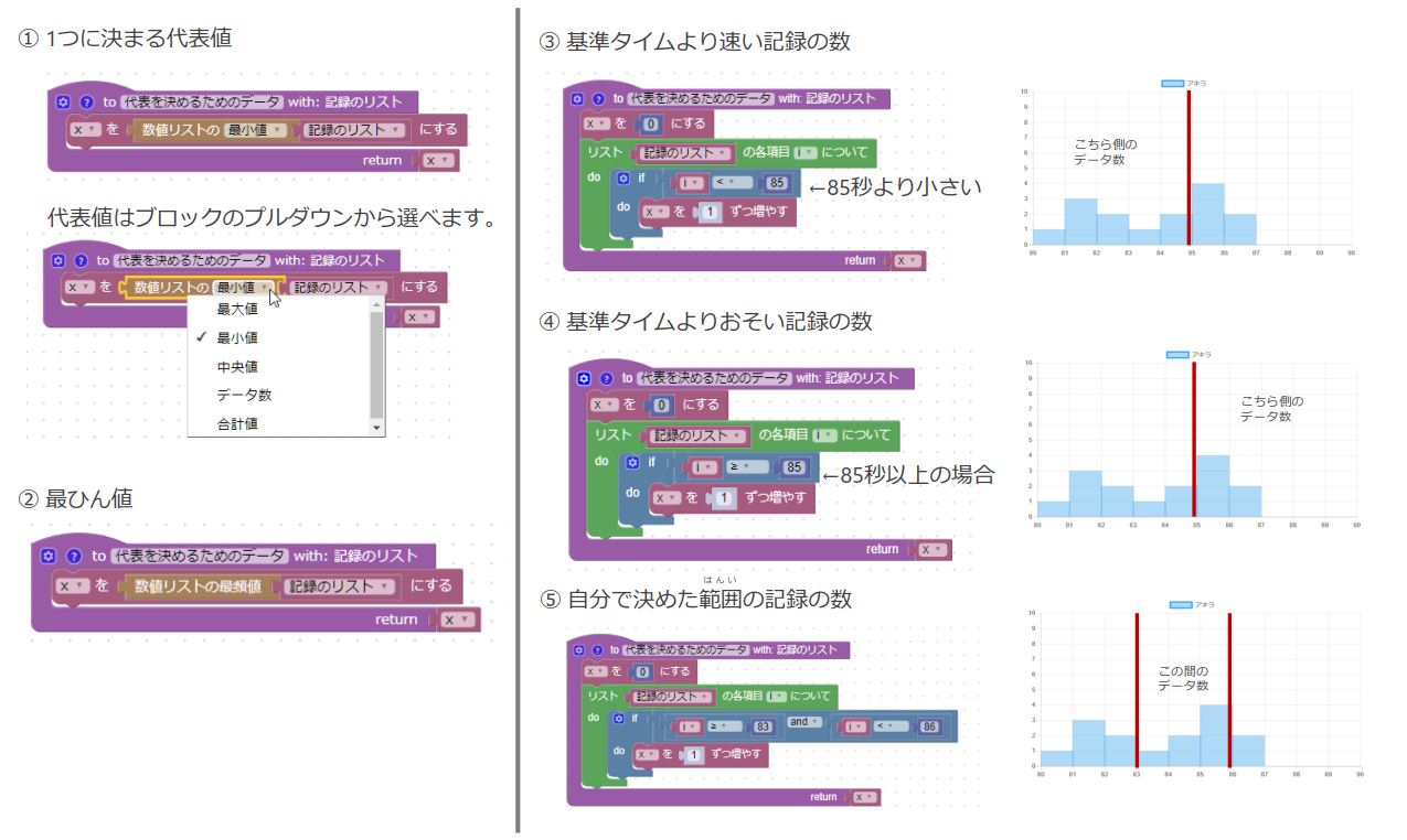 ヒストグラムや「代表を決めるためのデータ」を比べるプログラムを書いてみよう