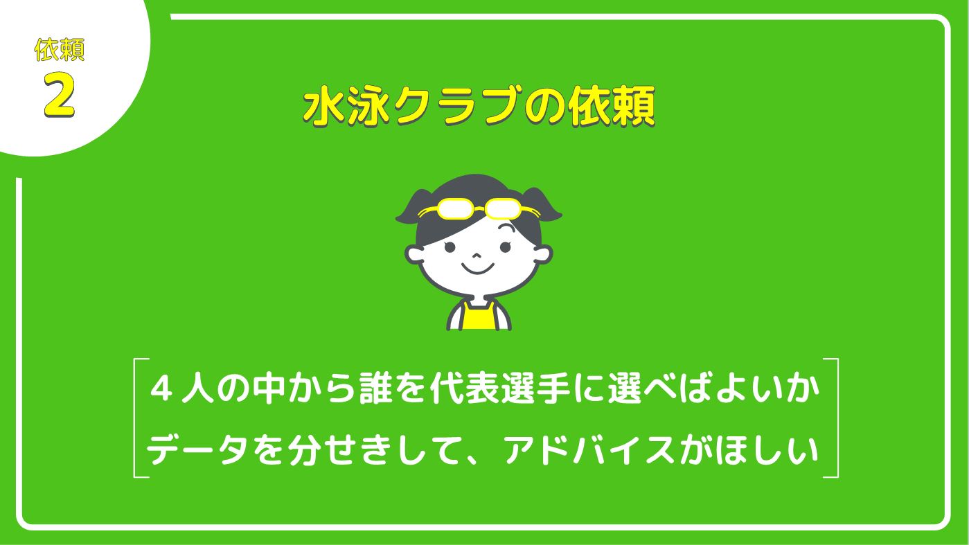 チュートリアル [依頼1]を始める依頼2.水泳クラブで代表選手に誰を選ぶべきか?
