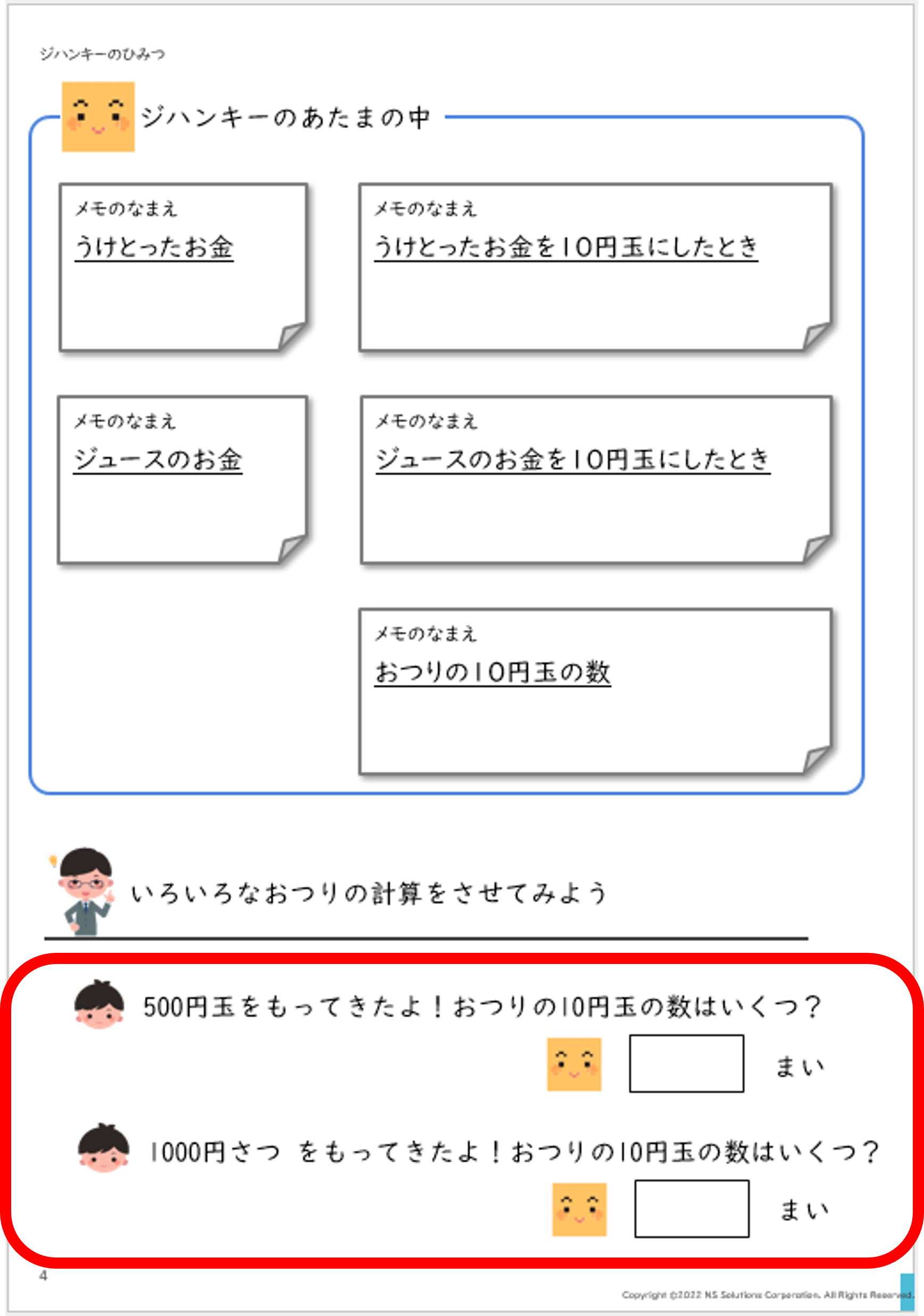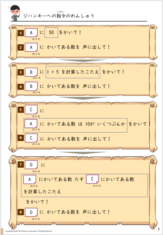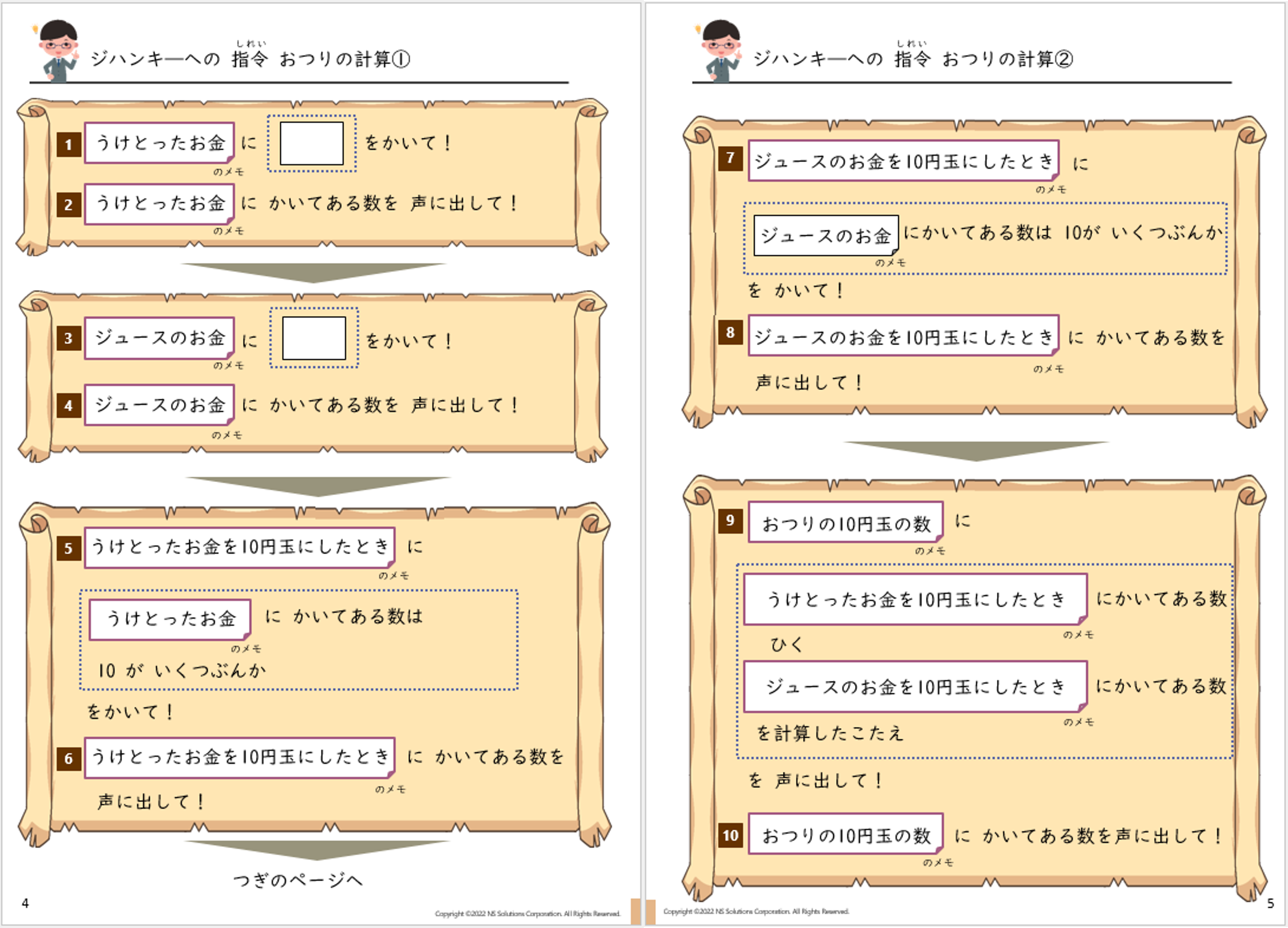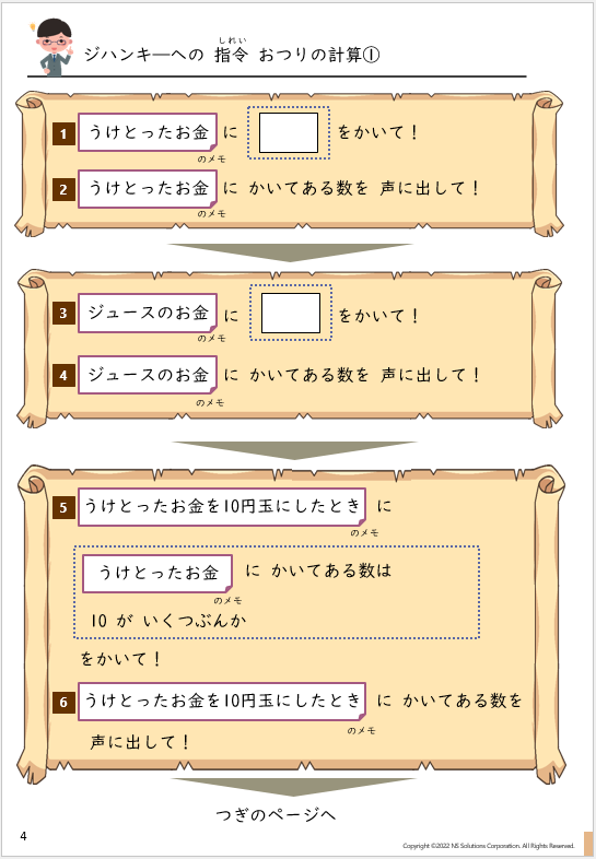 おつり計算の指令みほん